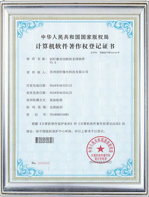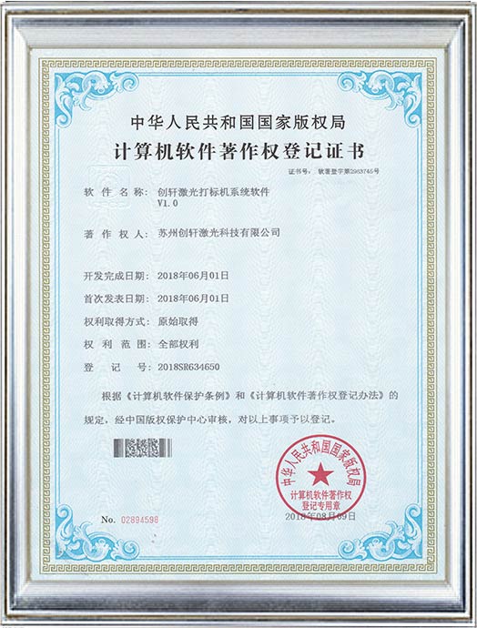創軒激光計算機軟件證書