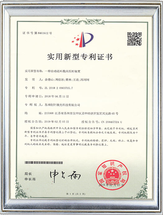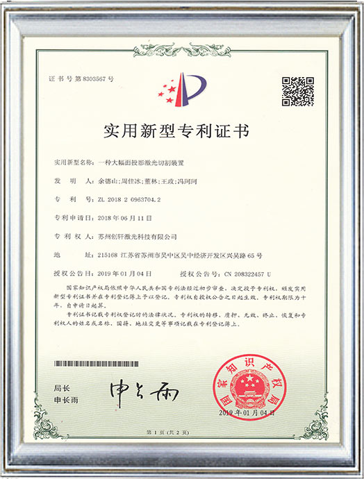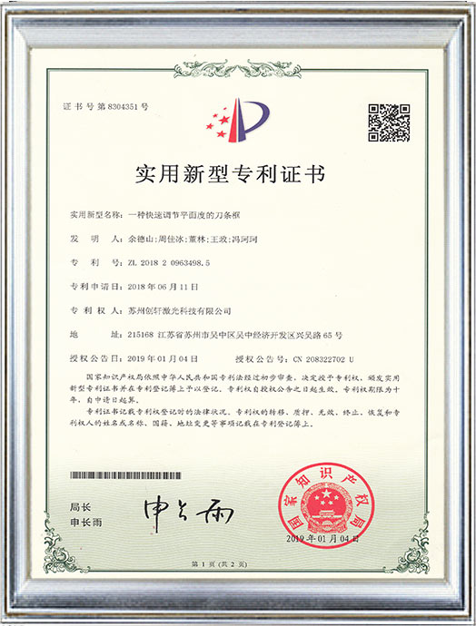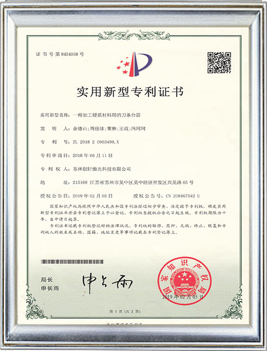 創軒激光專利證書